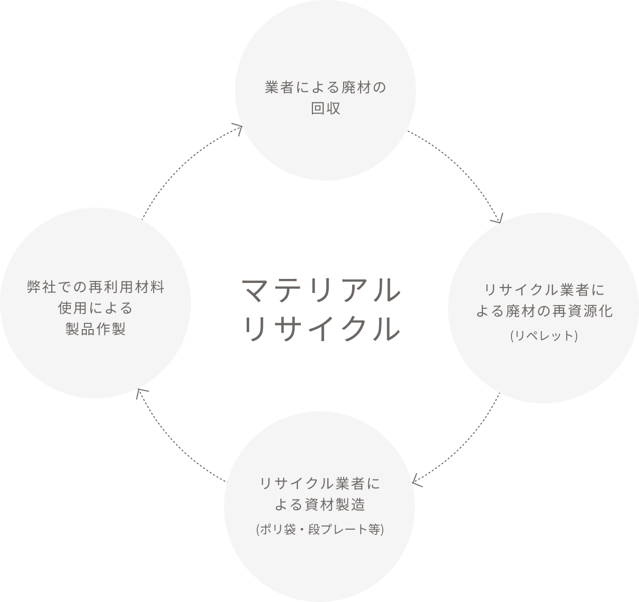 一般的に主な原料が石油由来の合成樹脂の緩衝材は製造の工程で多くのCO₂を排出する物質を排出しますが、坪井化成は製品作製過程で出た廃材について、可能な限り提携するリサイクル事業主様への回収を依頼し、廃棄物削減、原材料の使用量削減及びCO₂排出の削減に努めています。