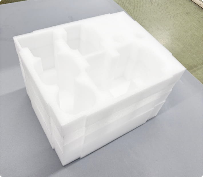 複数種類の製品を同時に梱包する必要がある案件に対し、サンテックを使ったカスタムインナーを製作。